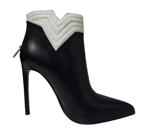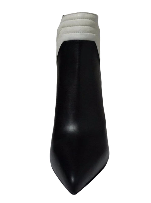 Yves Saint Laurent YSL Nero/Porcellana Leather Pointed-Toe Ankle Boots